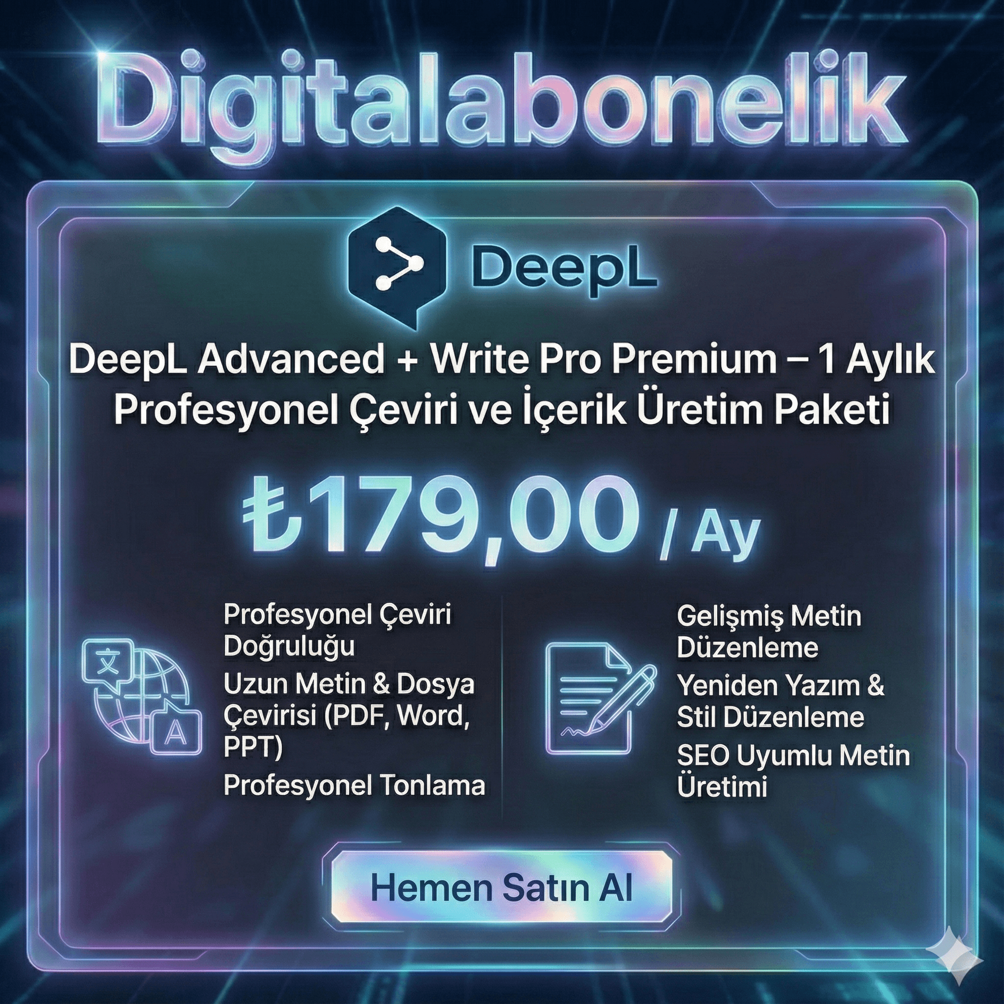 🌐 DeepL Advanced + Write Pro Premium – 1 Aylık Profesyonel Çeviri ve İçerik Üretim Paketi